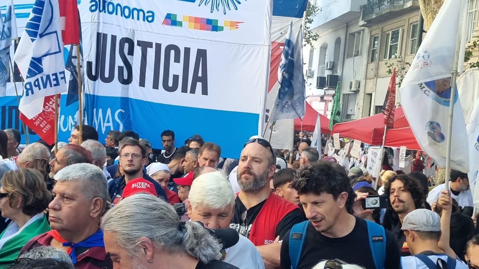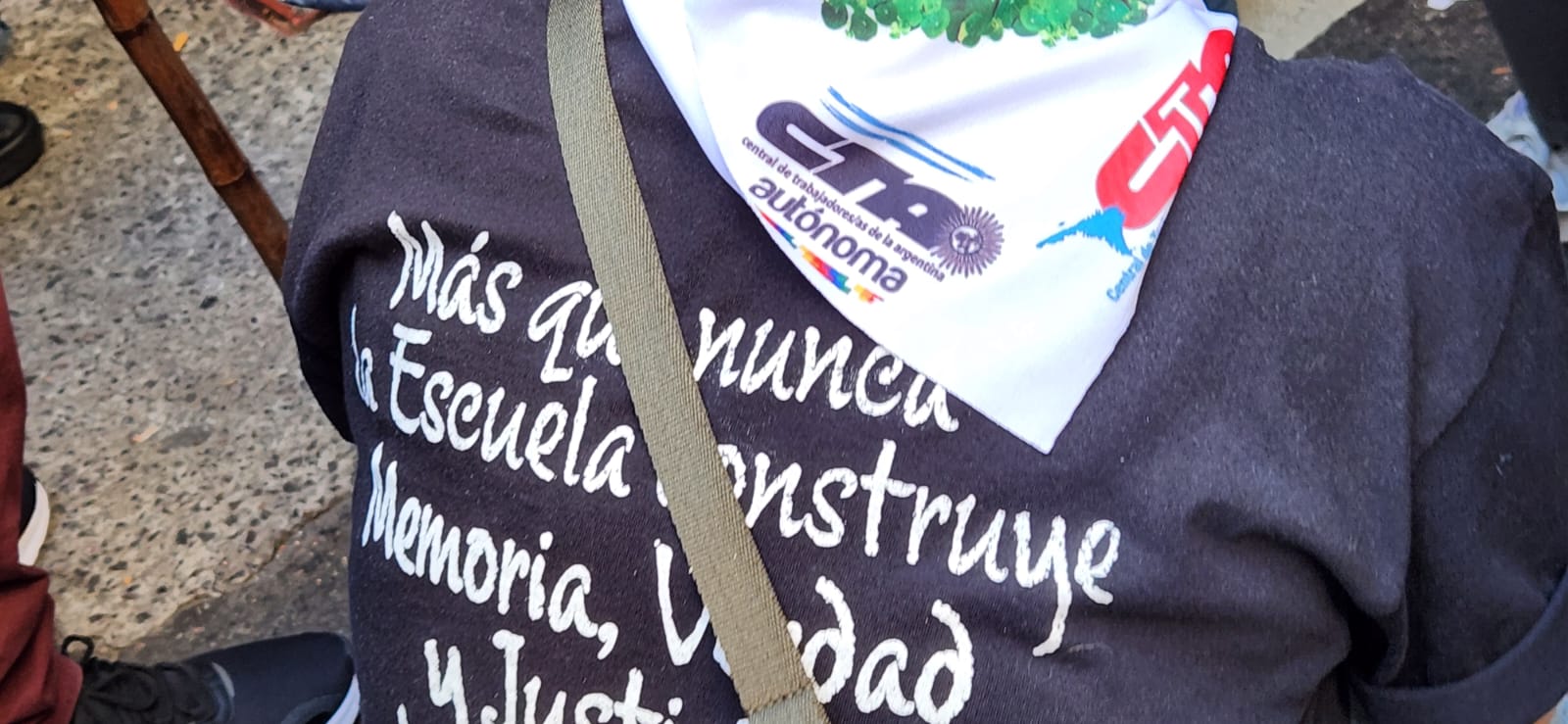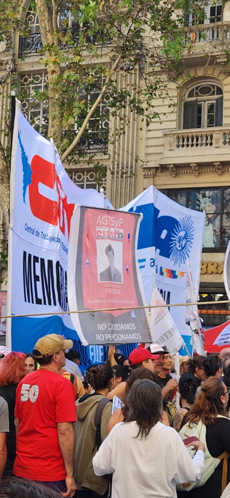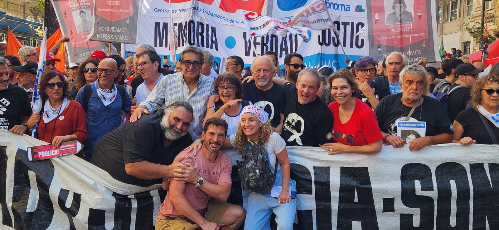 Roberto Baradel, secretario general del SUTEBA, CTA-T provincia de Buenos Aires y secretario de Relaciones Internacionales de la CTA-T Nacional, señaló: “Cientos de miles salimos a las calles hoy para decir Nunca Más. No queremos las políticas de odio, de crueldad de la dictadura militar, y tampoco las del gobierno de Milei”.