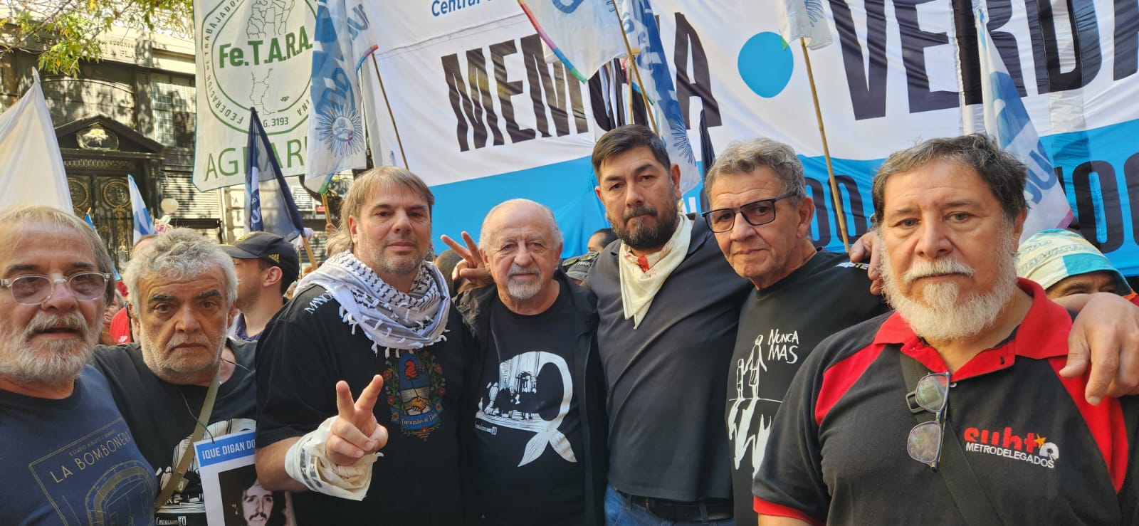 Daniel Catalano, secretario general adjunto de la CTA-T y titular de ATE Capital, consideró: “Son 50 años en un país que resiste, de democracia ininterrumpida, hoy con la particularidad de tener presos políticos, de tener a Cristina Fernández de Kirchner, además de proscripta, presa, y presa por resistir. Así que tenemos mucha tarea por hacer y mucho compromiso de la sociedad. También tenemos presxs a Milagro Sala, Julio de Vido y tantos otros luchadores que dieron su vida por un proyecto de país. Un pueblo organizado, movilizado, también diciéndole que no a las políticas de ajuste de Javier Milei”.