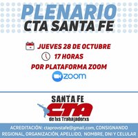 Con la presencia de 150 compañerxs en representación de las 106 organizaciones que nuclea CTA Santa Fe en toda la provincia, se desarrolló este jueves 28 de octubre un plenario, que permitió un amplísimo debate del contexto regional con miras al Congreso Nacional de la Central que se realizará el próximo 5 de noviembre en la localidad de Avellaneda, provincia de Buenos Aires.