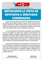 Repudiamos la visita de diputados a genocidas condenados
