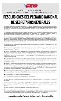 En razón de todo ello, y con el objetivo de fortalecer la unidad del movimiento obrero y popular en esta hora tan crítica, este Plenario Nacional resuelve: