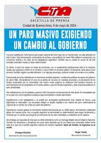 Con gran satisfacción, informamos que el paro nacional del 9 de mayo fue un rotundo éxito, con alta adhesión en todo el país. Esta demostración contundente de rechazo a las políticas de Javier Milei refleja el compromiso y la conciencia sindical y de clase de los trabajadores argentinos. También que la unidad en acción de las tres centrales sindicales resulta un factor determinante.